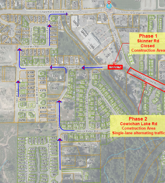 - Phase 1: Skinner Road between Stoneridge Road and Cowichan Lake Road